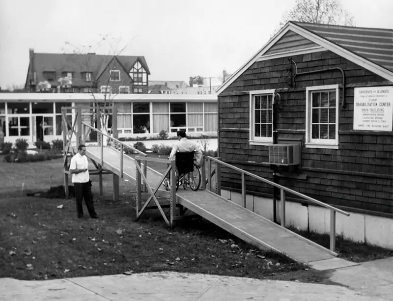 Ils apparaissent aux États-Unis à partir des années 1950, notamment autour de l’University of Illinois à Champaign-Urbana, sous l’impulsion de Timothy Nugent, responsable du programme de réadaptation pour étudiants handicapés. Son objectif est simple : permettre à des étudiants en fauteuil roulant de circuler réellement sur le campus et dans la ville. Une bordure de trottoir de quelques centimètres suffit à rendre un parcours urbain impraticable. On identifie la barrière, on la supprime. C’est du barrier-free design dans toute sa logique.